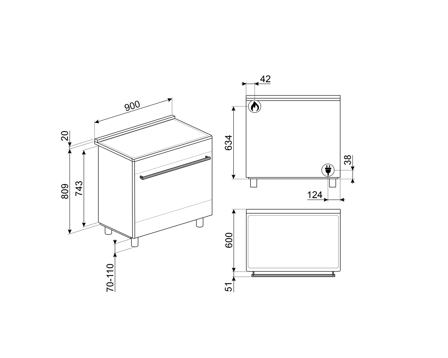 Отдельностоящий варочный центр, 90х60 см, цвет чёрный матовый