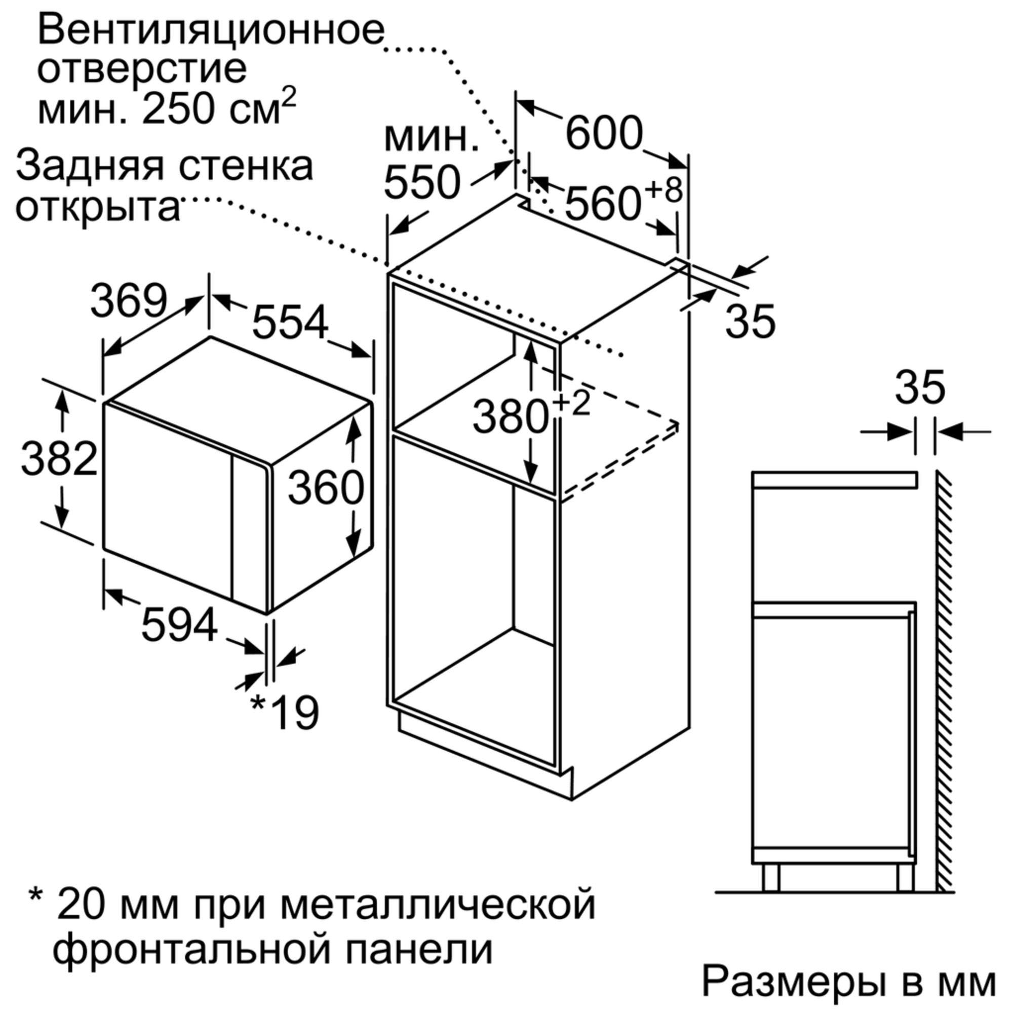 Размеры ниши для встраивания (ВхШхГ) 380 мм - 382 мм x 560 мм - 568 мм x 550 мм