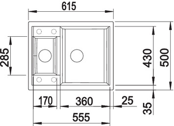Бланко Metra 6 состоит из двух чаш — большой с клапаном автоматом и маленькой с обычным корзинчатым вентилем. Прямоугольная форма позволяет устанавливать доску для нарезки продуктов на каждую из них, дополнительно увеличивая рабочую площадь.