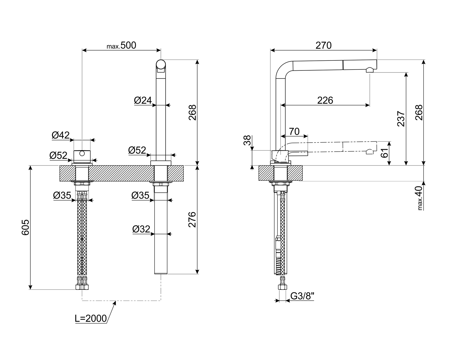 Смеситель утапливаемый в столешницу