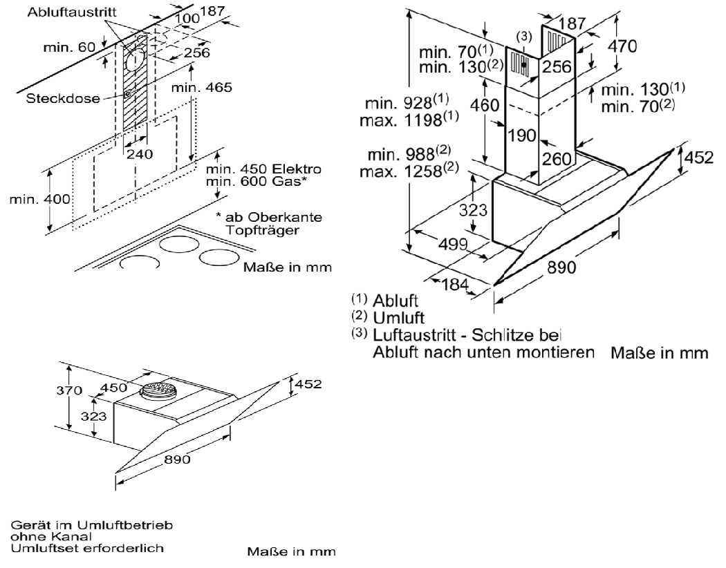 Размеры (отвод воздуха) (ВхШхГ) 928-1198 x 890 x 499 мм