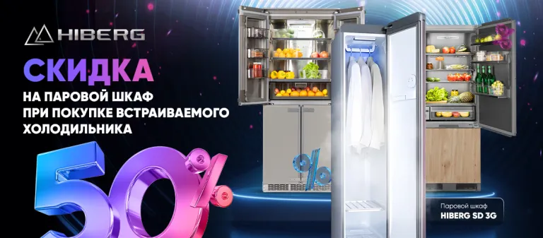 При покупке Встраиваемого Холодильника из списка скидка на паровой шкаф 50%!